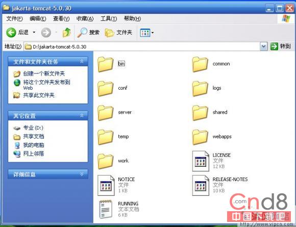 然后将jakarta-tomcat-5.0.30.zip直接解压到D盘根目录: