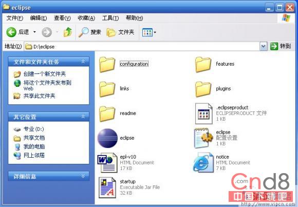 然后将eclipse-SDK-3.1.2-win32.zip直接解压到D盘根目录: