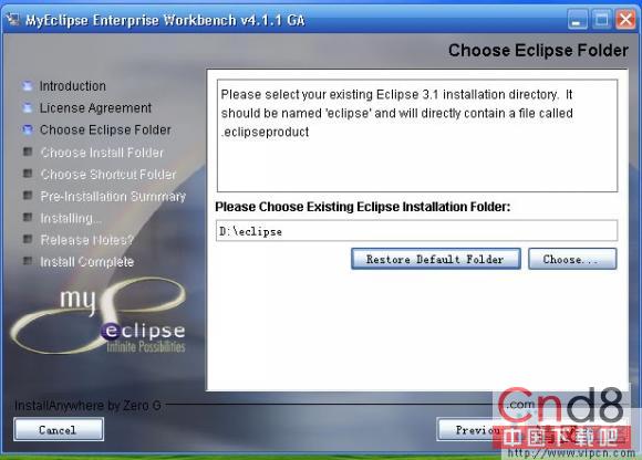 然后安装EnterpriseWorkbenchInstaller_4.1.1GA_E3.1.exe。注重:当安装到下图所示的步骤的时候要选择Eclipse的安装路径(如图),其他选项保持默认。