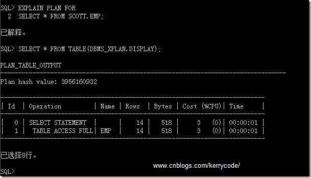 SQL>SELECT * FROM TABLE(DBMS_XPLAN.DISPLAY);