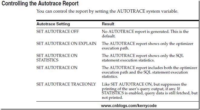 SQL>SET AUTOTRACE OFF