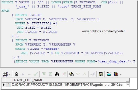 查询结果为wgods_ora_28279.trc文件, 但是去相应目录却没有找到对应的追踪文件,而是如下trace文件:wgods_ora_28279_10046.trc
