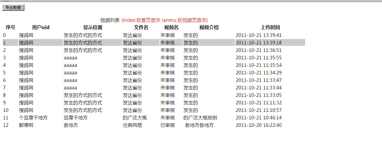 echo '<caption > 视频列表<span style="color:#FF0000; margin-left:6px;">(index:在首页显示 lanmu:在视频页显示)</span> </caption>';