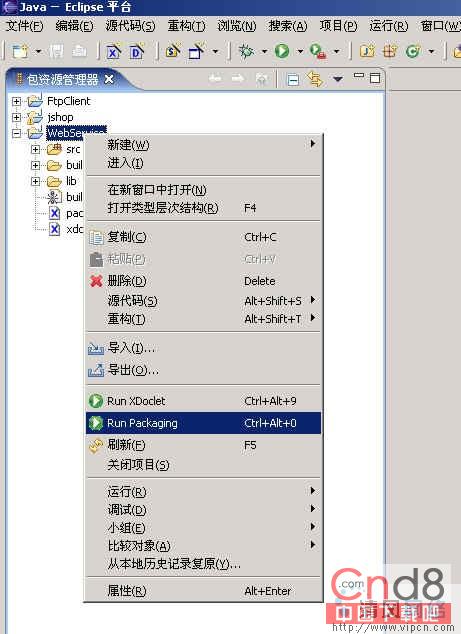 接下去是运行ant,进行打包,在项目名称上点击右键,在出现的右键菜单上点击Run Packing选项,如下图