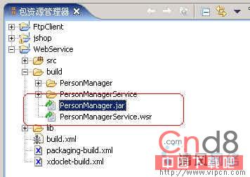 假如运行成功,则会去build目录下产生2个文件,PersonManager.jar和PersonManagerService.wsr文件,前一个是EJB打包文件,第2个是Web Service打包文件。如下图所示