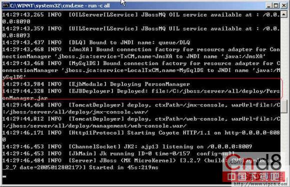 在红色线框中我们已经可以看到EJB(PersonManager.jar)已经部署成功了。