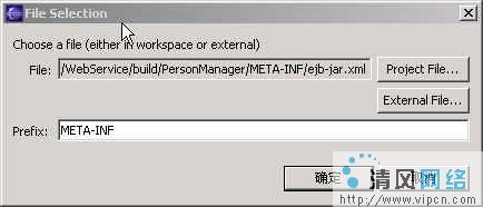 在File输入框中选择ejb-jar.XML文件的路径,在Perfix框中输入META-INF,表示该配置文件将被打包到META-INF目录中。