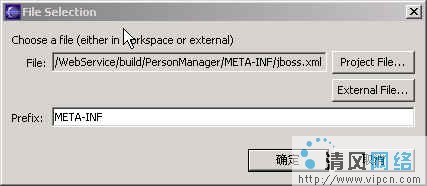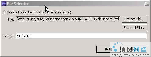 在File输入框中选择web-service.xml配置文件的路径,在Prefix输入框中输入META-INF,表示配置文件将被打包到META-INF目录中。点击确定完成。