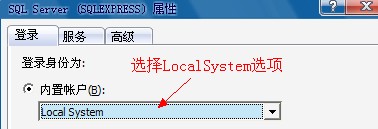 附加数据库成功后如果担心改变设置后影响以后使用可以将内置账户处的“Local System”再改回