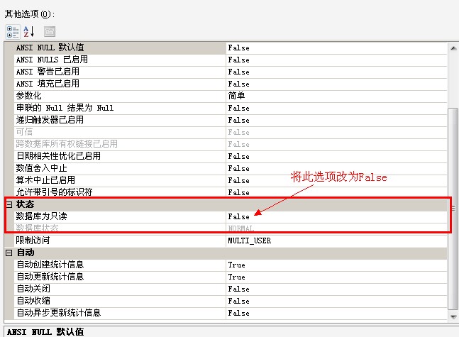 附加后发现数据库属性为“只读” 解决方法为: