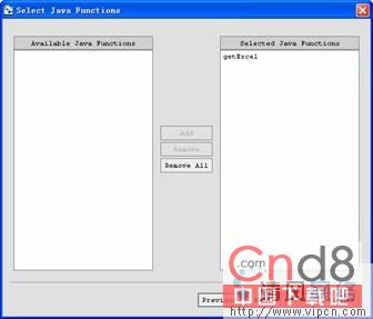 在选Java文件中,下一步,选中Java Functions:“getExcel”,加入到选中Functions列表中。