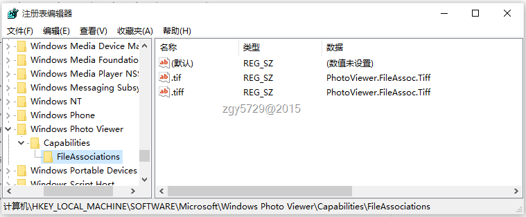 png、gif等文件使用的还是".gif"="PhotoViewer.FileAssoc.Gif"这样的对等关系,但实际系统中并没有相关的PhotoViewer.FileAssoc.Gif键值存在,因此我们需要手工将提取出来的注册表内容统一修改成".gif"="PhotoViewer.FileAssoc.Tiff" 这样的结构,问后提供修改附件下载,直接导入即可。
