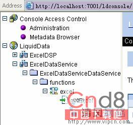 数据源已经建好。 6.测试 打开测试视图 输入两个参数,就getExcel的两个参数,第一个参数是文件名,第二个参数是sheet名, 输入:x1: c:BEAweblogic81samplesliquiddataEvalGuideexcelest.xls x2:Custome