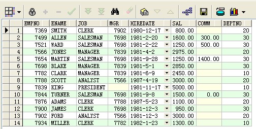 select * from scott.emp where rowid in(select rid from(select rownum rn,rid from(select rowid rid,empno from scott.emp order by empno desc) where rownum<10)where rn>=1)order by empno desc ;