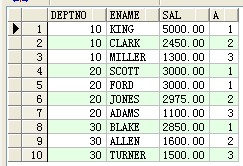 select * from(select a.*,row_number() over(order by empno desc) rk from scott.emp a ) where rk<10 and rk>=1;