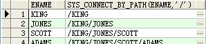 select ename,sys_connect_by_path(ename,'/') from scott.emp start with mgr is null connect by prior empno=mgr ;