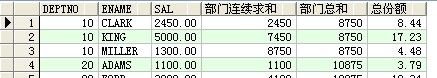 --rows unbounded preceding 分析函数(显示各部门的积累工资总和)