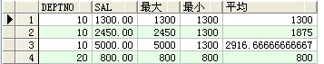 select a.deptno,min(sal) from scott.emp a group by deptno ;