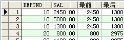 select deptno,ename,sal,sum(sal) over(order by deptno rows between 1 preceding and 1 following) 汇总值 from scott.emp ;