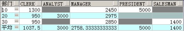 17. 按照部门统计每种岗位的平均工资,要求输出的格式如下图所示: