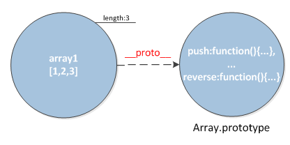 push这个方法来自于array1的__proto__成员指向对象的一个方法(Array.prototye.push())。正是因为所有的数组对象(通过[]来创建的)都包含有一个指向同一个具有push,reverse等方法对象(Array.prototype)的__proto__成员,才使得这些数组对象可以使用push,reverse等方法。