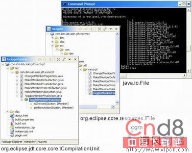 通过了解 Eclipse 用户界面如何反映其底层模型,以及 Eclipse 模型如何成为相互构建的基础,这向我们提供了该如何找到“插入”我们扩展的最佳位置的重要线索。显示在视图下面的 Eclipse 接口名称 IFile 和 ICompilationUnit 就是我们可以预期从构成 Eclipse 的模型中获得的两个接口示例。由于它们通常对应于用户界面中显示的控件项,所以您已经对通过编程获得的效果有一个直观的感受。
