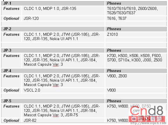 下面是在市面上支持JAVA平台的索尼爱立信主要特点和机型。