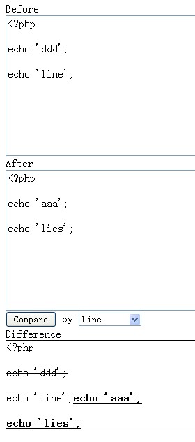 Function FormatDiffAsHtml($before, $after, &$difference)