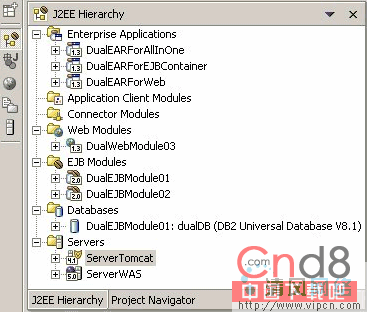 对于 Tomcat 类加载器,我们需要 Enterprise JavaBeans 类和接口(通常包含在 javax.ejb 包内)。对于 Tomcat,将标准的 j2ee.jar 放入类路径可能会引起已知的不兼容性问题,因为 javax.servlet 包出现在 j2ee.jar 和 servlet.jar 这两个文件中。避免这个问题的惟一方法是创建一个新的 j2ee-modified.jar,只包含必要的与 EJB 有关的类(通过下载的文件提供)。将此文件添加到“External JAR”选项中。