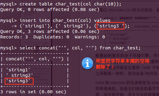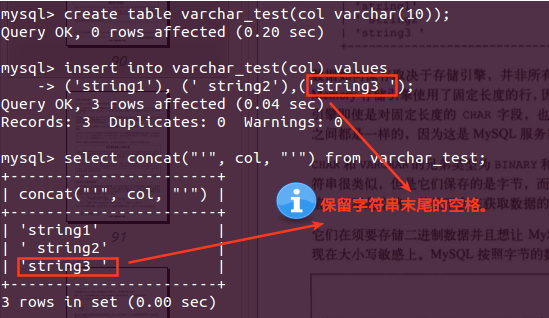 (3)char常用于很短字符串或长度近似相同的字符串的时候很有用。如存储用户密码的MD5哈希值,它的长度总是一样的。