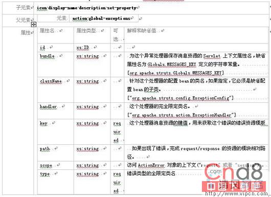 这个元素向struts系统为一个exception类型注册了一个ExceptionHandler。.