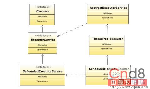 在Java 5.0之前启动一个任务是通过调用Thread类的start()方法来实现的,任务的提于交和执行是同时进行的,假如你想对任务的执行进行调度或是控制同时执行的线程数量就需要额外编写代码来完成。5.0里提供了一个新的任务执行架构使你可以轻松地调度和控制任务的执行,并且可以建立一个类似数据库连接池的线程池来执行任务。这个架构主要有三个接口和其相应的具体类组成。这三个接口是Executor, ExecutorService和ScheduledExecutorService,让我们先用一个图来显示它们的关系: