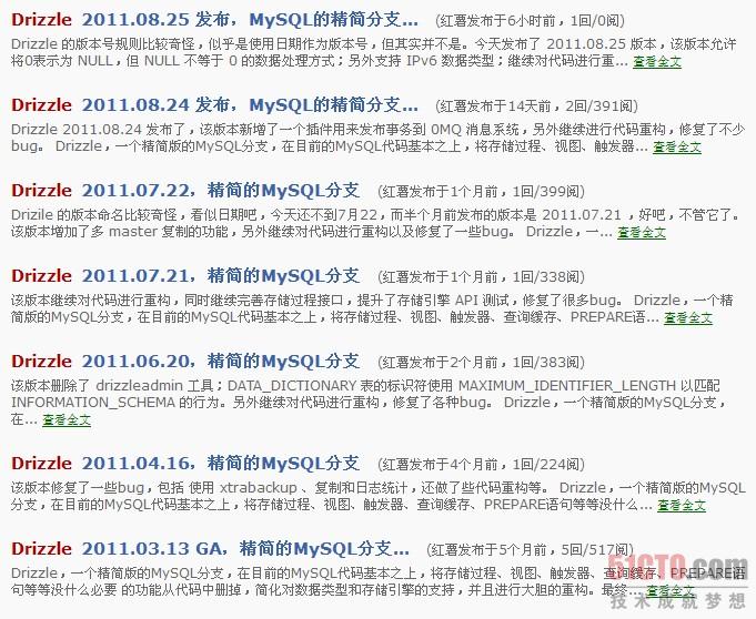 MySQL的精简分支,Drizzle 2011.08.25发布