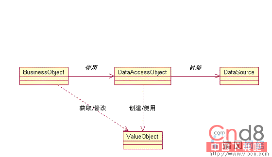 DataAccessObject也许会接受来自于客户端的数据,其中这些用于更新数据源的数据存放于值对象中来传递。