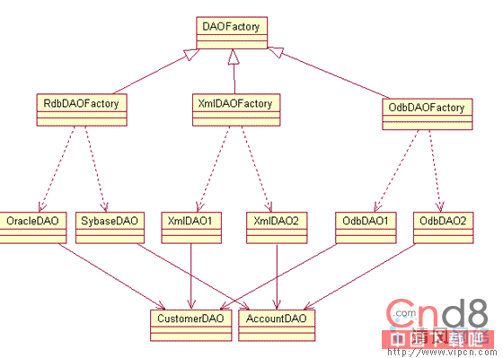 当低层存储不会随着实现变化而变化时,该策略可以使用工厂方法模式来实现该策略。以产生应用程序需要的大量DAO。图2是这种情况下的类图。