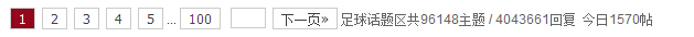 2.虎扑话题( http://bbs.hupu.com/topic-5)的页码包括了"上一页"、"下一页"、具体页码、手动输入跳转至第几页、信息等元素,还包括首页和末页,只不过这里的首页和末页不是用文字而是用具体页码表现出来。分页偏移量前后都是4页。博客园的列表页( http://www.cnblogs.com/cate/php/#p12) 是相同的处理方式。