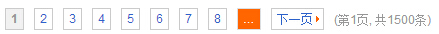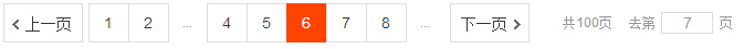 3.淘宝网宝贝列表页( http://s.taobao.com/list?spm=a217v.7289245.1997888733.7.4JHYae&seller_type=taobao&sort=sale-desc&cat=50029216&sd=0&tid=0&olu=yes&isnew=2&navid=city&smc=1&_input_charset=utf-8&tab=all&app=list&s=0&auction_tag[]=12034),包含"上一页"、"下一页"、具体页码、信息、手动输入跳转至第几页 ( 还有个小小的效果,点击去第几页的输入框时会弹出确定按钮 ),也包含首页,只不过首页是用页码1代替。分页偏移量前后都是2页