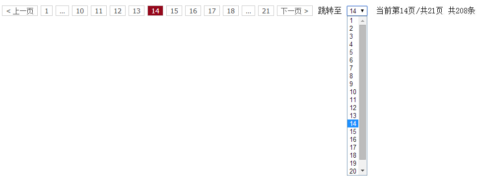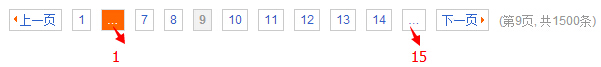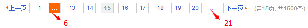前后偏移量可自定义,可相同可不同,前面的"..."跳转至最前页除首页的页码的前一页