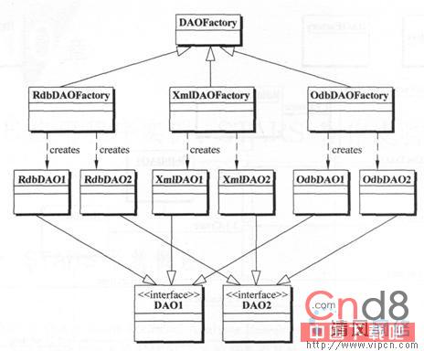图11给出了这种情况的类图。该类图表示了一个基础的数据访问对象代理,它是一个抽象类,被其他一些实际的数据访问对象代理继续以支持特定的数据访问函数;用户可以得到一个实际的数据访问对象,并利用它来创建需要的数据访问对象而访问相关的数据,每一个实际的数据访问对象都负责建立对于数据源的连接,并得到和治理所支持的业务数据。