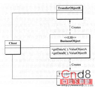 业务对象创建了传输对象。而用户通过访问业务对象,既得到了所需的信息,也对相关数据做出了一定的修改;为了能够使得用户可以修改业务对象各个域的取值,这个对象必须提供一定的变值方法,而出于对Web负担的考虑,业务对象所提供的方法最好以传输对象为参数。相应地,这些方法可以去调用传输对象所提供的方法,来设置传输对象的各个成员变量的取值;同时在传输对象的方法中,我们也可以植入数据验证和完整性检查的逻辑,这样在用户从业务对象的方法得到传输对象时,可以直接调用传输对象的成员方法进行本地数据访问,当然这种本地数据访问不会影响到业务对象。
