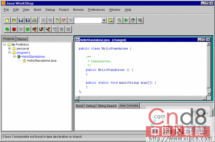 此外,Java WorkShop支持JDK1.1.3以及JavaBeans组件模型,API和语言特征增加了编译Java应用程序的灵活性。 Java WorkShop开发环境由于完全用Java写成,所以可移植性极好,以致于多个平台都能支持,目前Java WorkShop支持Solaris操作环境SPARC及Intel 版)、Windows95、WindowsNT、以及HP/Ux等平台。适合于初学者进行一些简单的Java编程。Java WorkShop的缺点是Java Workshop中的每一个可视化对象都迟早会用到网格布局,这种设计方法是许多人不习惯的;Java Workdshop的调色板是较差的,仅仅能满足绝大部分应用的基本要求。
