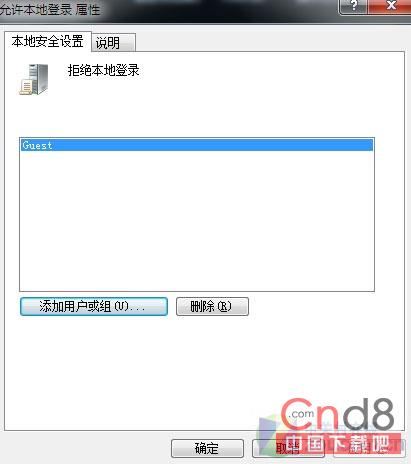 修改完毕后,单击“确定”按钮,保存这一项的设置。返回到图1中,在右侧窗口中找到并双击“拒绝本地登录”,然后也将其中的“Guest”帐户删除,并保存设置退出(如图3)。
