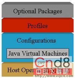 目前,J2ME中有两个最主要的配置,分别是Connected Limited Devices Configuration(CLDC)和Connected Devices Configuration(CDC)。他们是根据设备的硬件性能进行区分的,例如处理器、内存容量等。由于这个标准是在2001年的时候指定的,而现在移动终端的处理能力和内存容量发展很快,假如还按照这个标准来评判可能就不准确了。 因此我们只是列出标准,供读者参考。本教程将主要讲解基于 CLDC的J2ME平台的相关内容。随着技术和硬件设备的不断发展,J2ME开发网将逐步推出基于CDC的J2ME平台介绍。