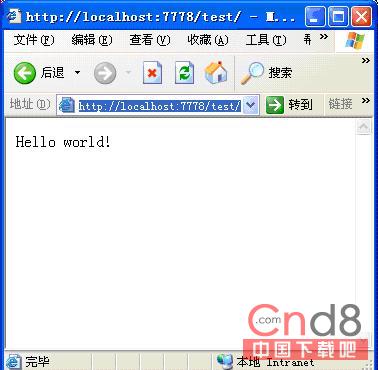然后,在浏览器中访问 http://localhost:7778/myapp/,我们得到: