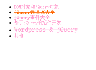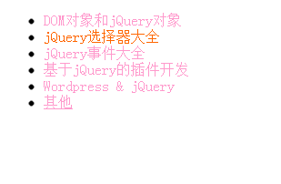 <li><a href="#" title="jQuery选择器大全" class="item-selected">jQuery选择器大全</a></li>