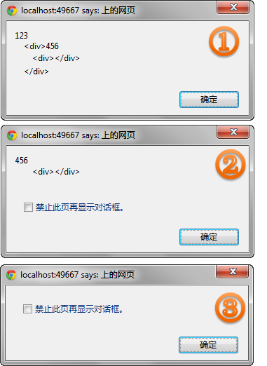 结果却是弹出三个alert,只不过最后一个alert里面是空白的。