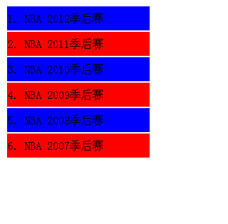 看到这个就想起英文单词里的,fourth, fifth, sixth……,nth表示第n个,:nth-child就表示第n个child元素。要注意的是,这儿的n不像eq(x)、gt(x)或lt(x)是从 0开始的,它是从1开始的,英文里好像也没有zeroth这样的序号词吧。