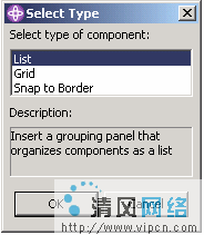 把 Panel-Group Box 组件拖到空白的 StockTemplate.jtpl 上,如图 13 所示。假如 JTPL 上有一些文本,则在拖动组件之前将其删除掉。将会显示一个对话框,要求您选择组件的类型。选择 List,如图 14 所示。