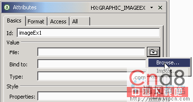 可以通过添加属性来自定义组件。选择第一个图像然后转到左下角。这将会激活属性视图,其中应该包括 Web 页面上所选项(在本例中为图像)的属性信息。选择 File 文本框后面的 Browse 按钮,如图 17 所示。
