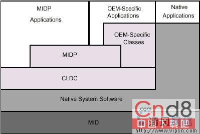 configuration包括虚拟机(virtual machine),核心的类库与API。configuration层定义一个java虚拟机的特性与java类库的最小子集。也就是说,configuration层提供了开发人员一个最基础,最核心的Java平台。因为j2me把设备分为两类:联接设备(connected device)和有限联接设备(Connected, Limited Device)。对应这两种设备就有了两种J2ME configuration。分别为CDC(Connected Device Configuration)和CLDC(Connected, Limited Device Configuration)。这里请注重,CDC使用经典的javaVM,而CLDC使用的是KVM(The K Virtual Machine)。KVM是sun专门为使用16/32位RISC/CISC微处理器或控制器,并其可用内存为160kb~512kb的的设备而开发的。KVM比较小,通常只有128K或更少。